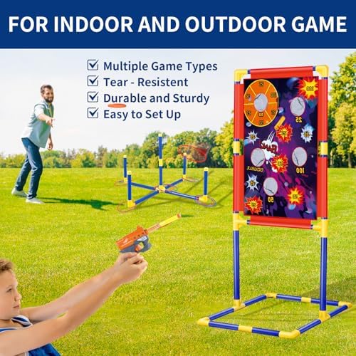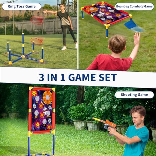Dieser 3-in-1-Spielstand ist das perfekte Spielzeug für aktive Kinder. Er kann als Ziel für das Werfen von Beanbags, als Ziel für Schießspiele oder als Ziel für ein Ringwurfspiel eingerichtet werden. Egal ob im Garten, im Hinterhof oder im Park – dieser Spielstand sorgt für stundenlangen Spielspaß.