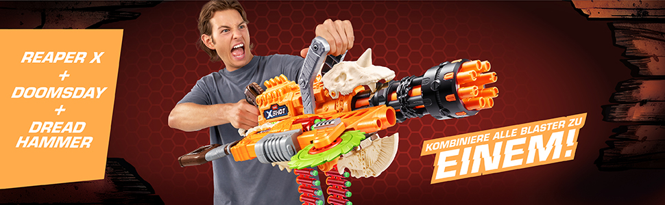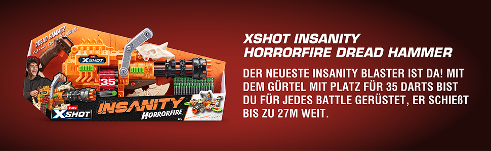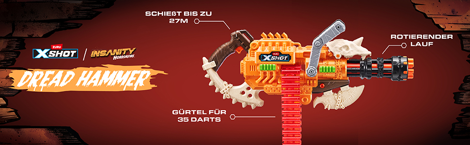 Erlebe die beeindruckende Schusskraft des XSHOT Insanity HorrorFire Dread Hammer Blasters. Mit einer Reichweite von bis zu 27 Metern kannst du deine Gegner präzise und effektiv treffen. Diese Leistung macht ihn zum perfekten Begleiter für actionreiche Spielsessions im Freien oder drinnen.