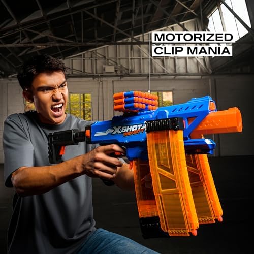 Der motorisierte XSHOT Insanity Clip Mania Blaster begeistert mit seiner beeindruckenden Schusskraft. Mit einer Reichweite von bis zu 30 Metern kannst du mehrere Ziele gleichzeitig treffen, was dir im Battle einen klaren Vorteil verschafft. Das bedeutet stundenlangen Spielspaß und aufregende Herausforderungen!
